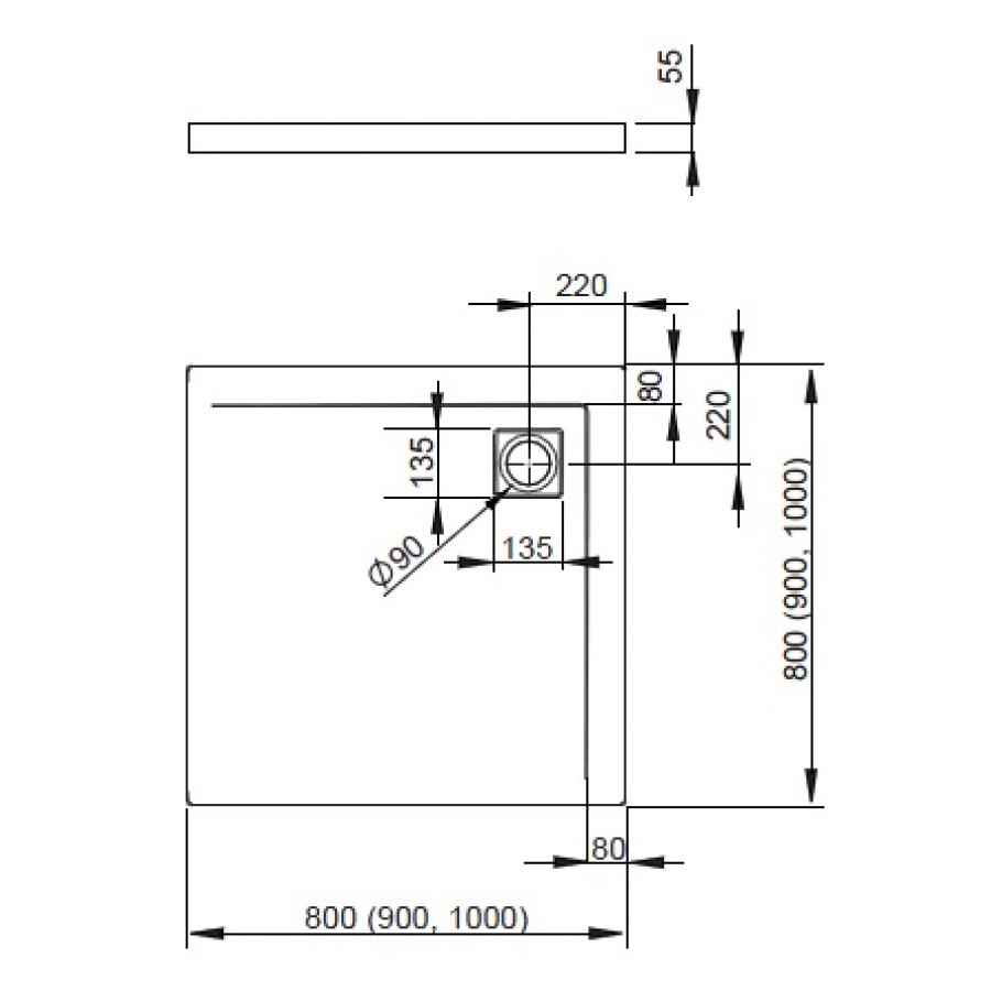 - Отверстие под сифон Ø90