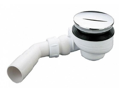 Сифон под отверстие в поддоне Ø 90 mm, самоочищающийся, высокая пропускная способность 54 л/мин. Декоративная хромированная крышка диаметром 112 мм, угол изгиба сливной трубы 135°. Шарнирная система позволяет регулировать направление сливной трубы. Диаметр сливной трубы 40/50 мм, высота сифона 80мм.