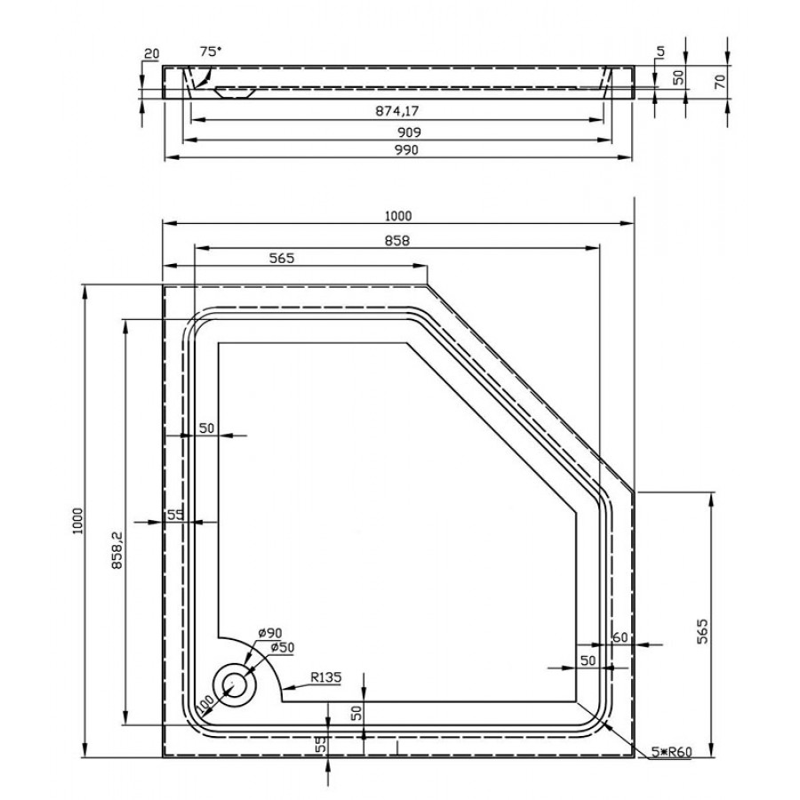- Отверстие для слива в поддоне 50мм. В комплекте с поддоном поставляется сифон