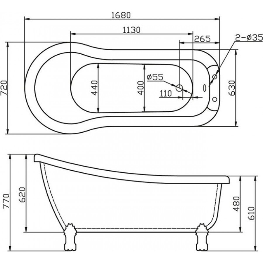 - Расположение перелива: сбоку