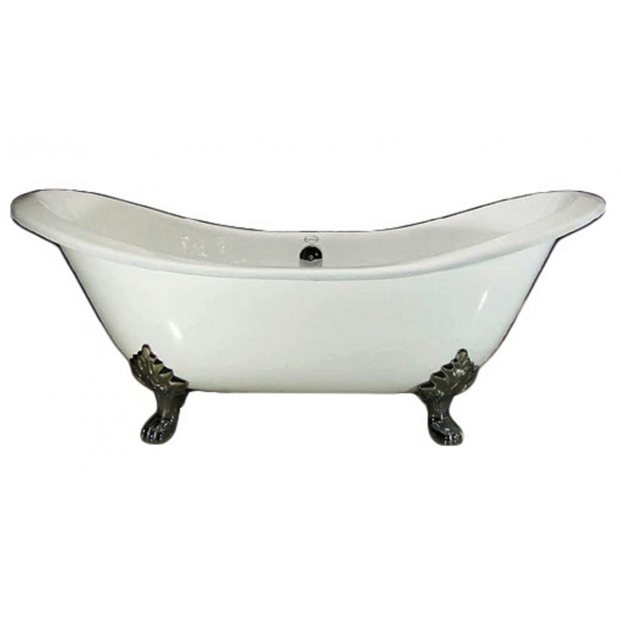CONSUELO - большая чугунная ванна, с белой полуглянцевой внешней поверхностью, объемной овальной чашей, симметричными спинками-подголовниками, центральным переливом и хромированными фигурными ножками. Вес 176 кг.