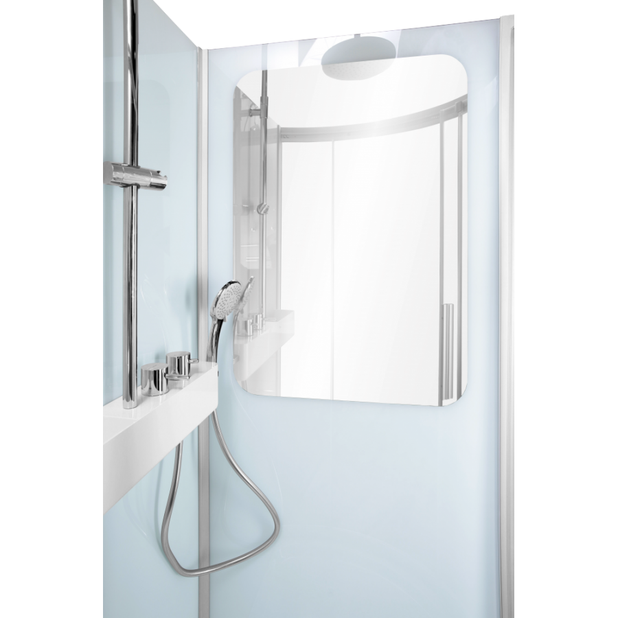 По-настоящему современный инновационный дизайн отличает его применимость и удобство в эксплуатации. Мы позаботились о том, чтобы каждая деталь внутри кабины решала поставленную задачу. Так, в задней стенке размещена новаторская полочка с интегрированным смесителем и переключателем, а полноразмерное зеркало встроено таким образом, чтобы полностью исключить скопление грязи и мыльных остатков – вам не придется тратить свое время на уборку.