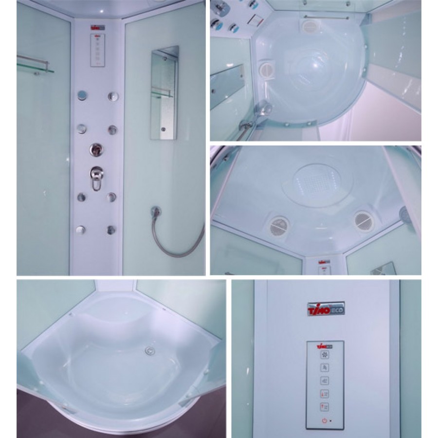 Душевая кабина TIMO TE-0709 90x90. Коллекция Eco имеет безсиликоновую сборку. Cтекло душевой кабины с водоотталкивающим покрытием, обладает ударопрочными свойствами за счет проведенного в процессе производства закаливания. Задние стенки светлое стекло, а центральная панель выполнена из пластика. В моделях Timo Eco с высоким поддоном имеется встроенное сиденье.