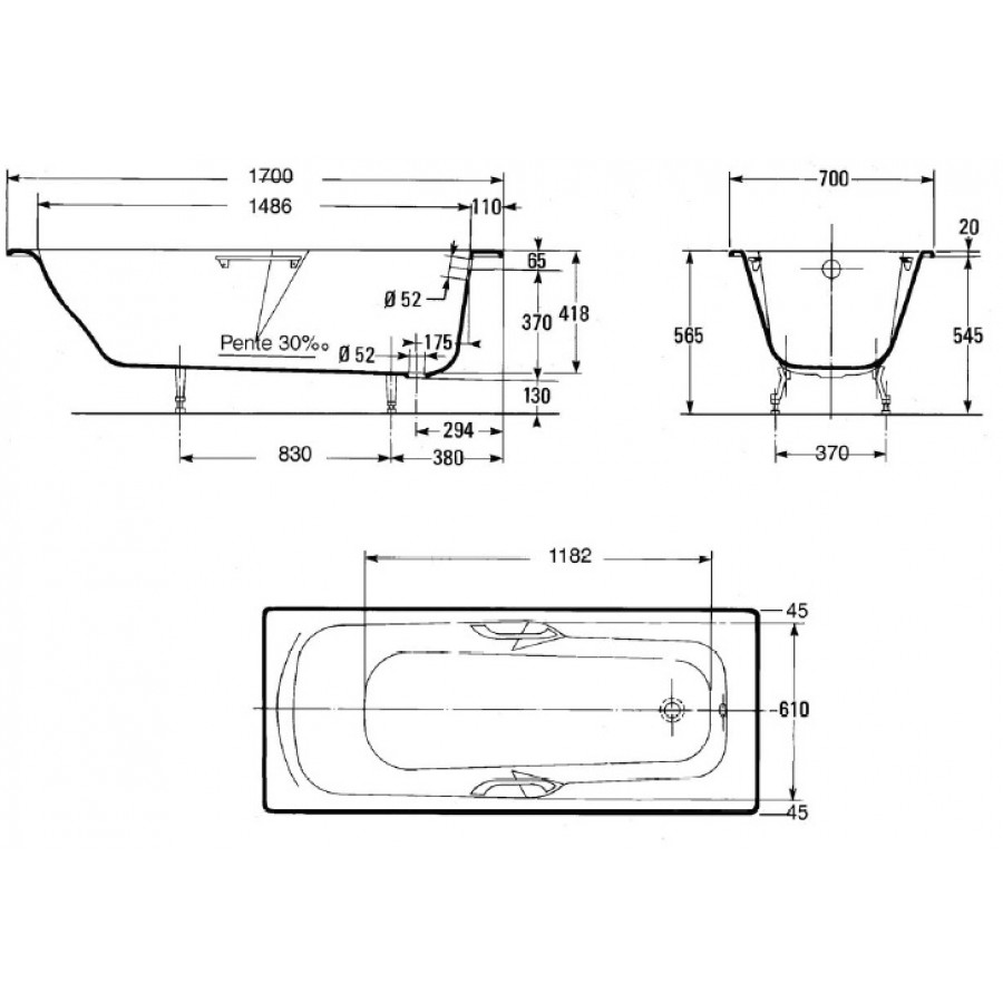 Чугунная ванна Jacob Delafon Prelude 170x70 с ручками E2924