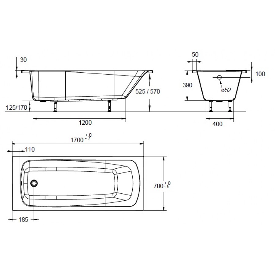 - Ванна Patio 170х70 с регулируемыми ножками