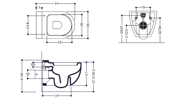 - Унитаз подвесной One (51x36), с горизонтальным выходом (1401001), белый
