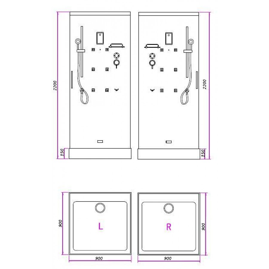 Душевая кабина BandHours Beta 90x90 L/R