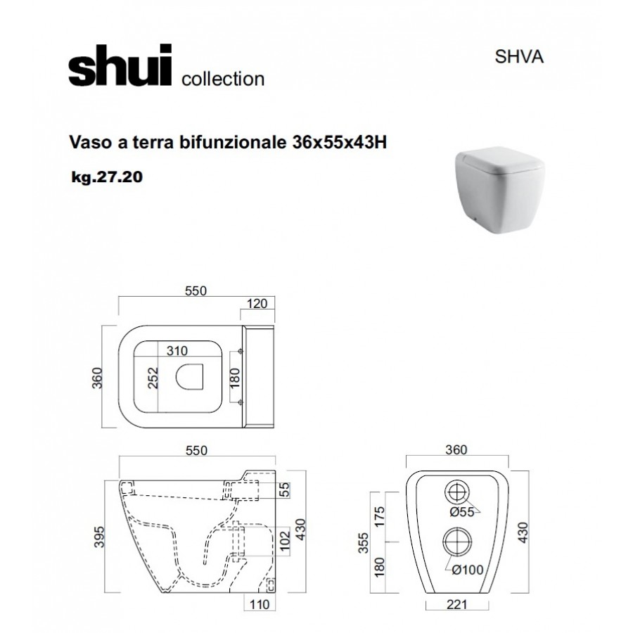 - Унитаз приставной SHUI (арт.SHVA black). Цвет: белый. Размеры: 550х360х430