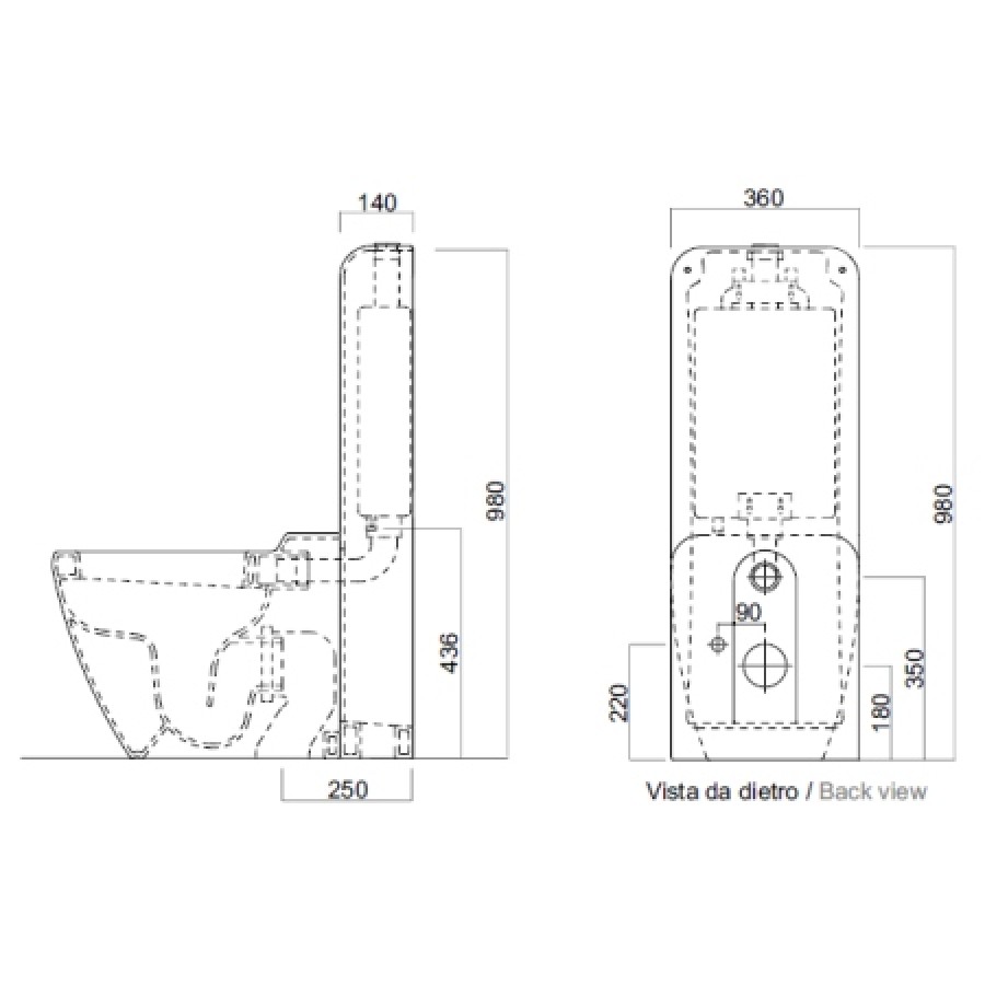 - Чаша унитаза (арт.SHVA) с керамическим бачком (с кассетой с механизмом смыва арт.SHMEC). Цвет: белый