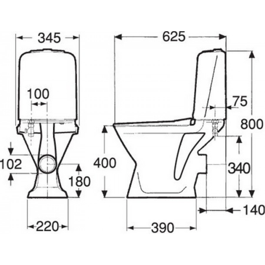 - Унитаз напольный с бачком + стандартная сиденье-крышка (белая)