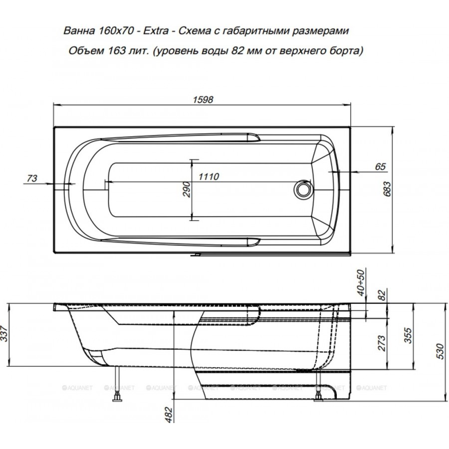 Акриловая ванна Aquanet Extra 160x70