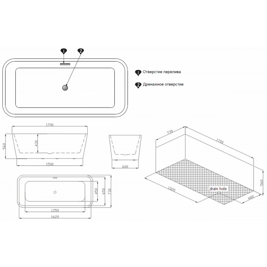 Акриловая ванна Azario WALESA 170х73 AZ-M702S