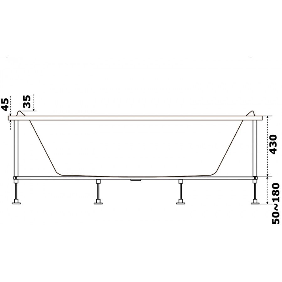 - Ванна устанавливается на каркас. Ножки на каркасе регулируются по высоте.