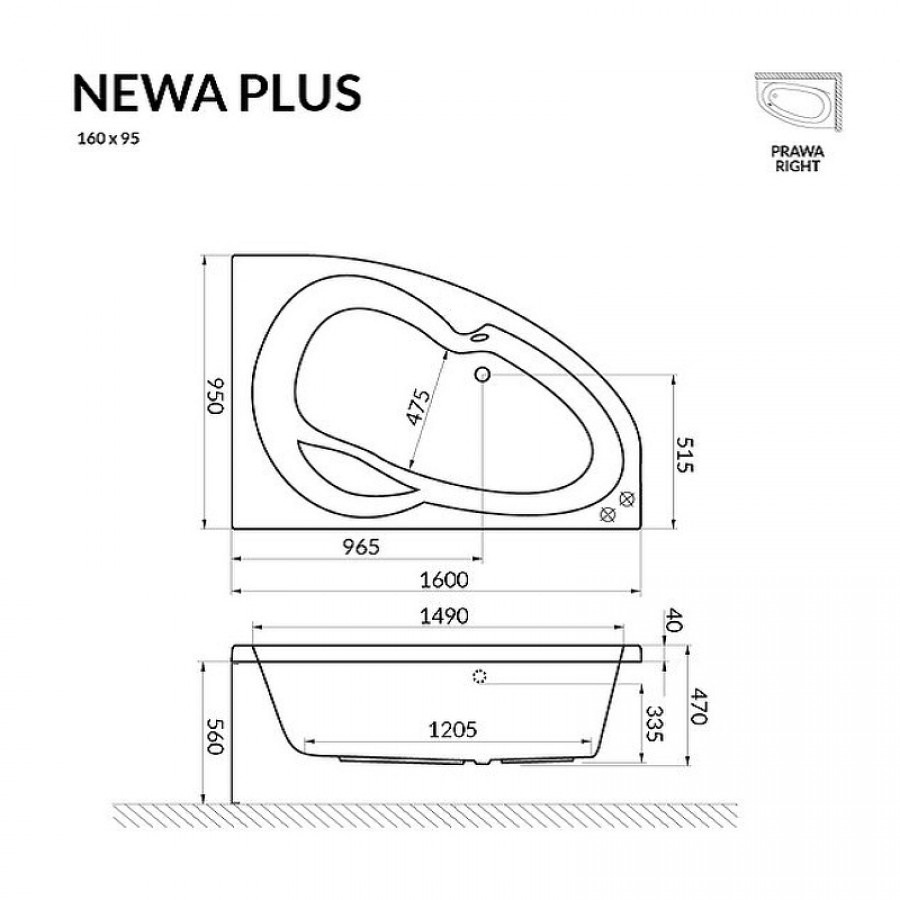 Акриловая ванна Excellent Newa 160x95 R