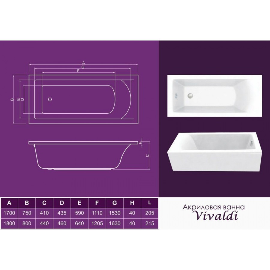 Акриловая ванна GFS Vivaldi 170х75 без ножек