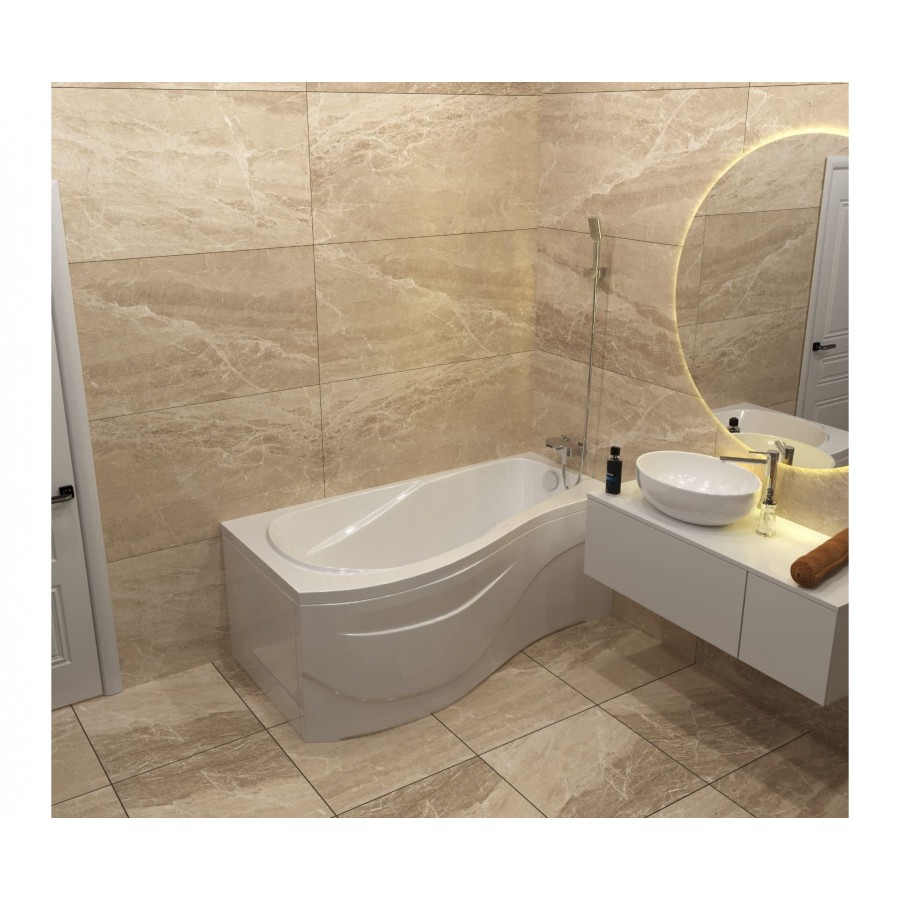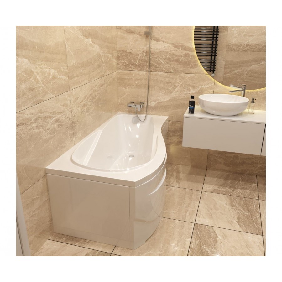 Асиметричная чаша армирована стекловолокном, что придает нужную жесткость, ударопрочность, а также защиту от деформации. Вода при наборе не грохочет о дно и остается теплой длительное время. Нагреваясь, материал не выделяет вредных веществ. Поверхность обладает антибактериальными свойствами. Не нуждается в применении специализированных моющих средств, так как устойчива к загрязнению, царапинам и впитыванию запахов.
