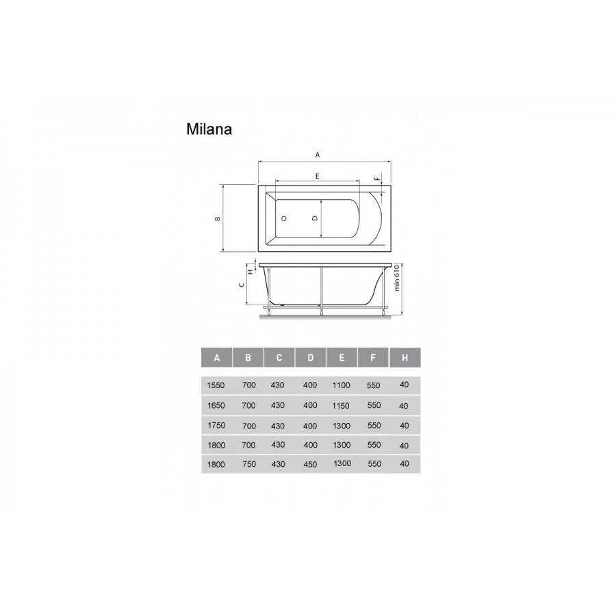 Акриловая ванна Vayer Milana 155x70 Гл000024269