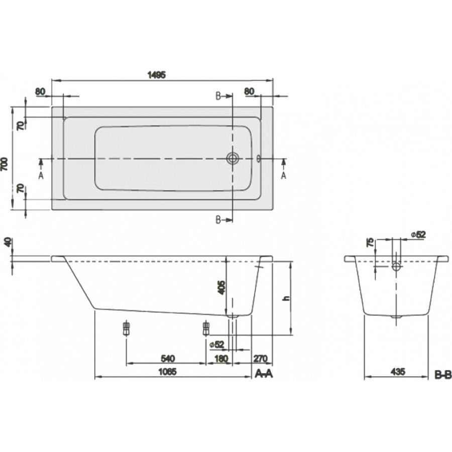 Акриловая ванна Villeroy&Boch Targa Plus Mono 150x70, с ножками