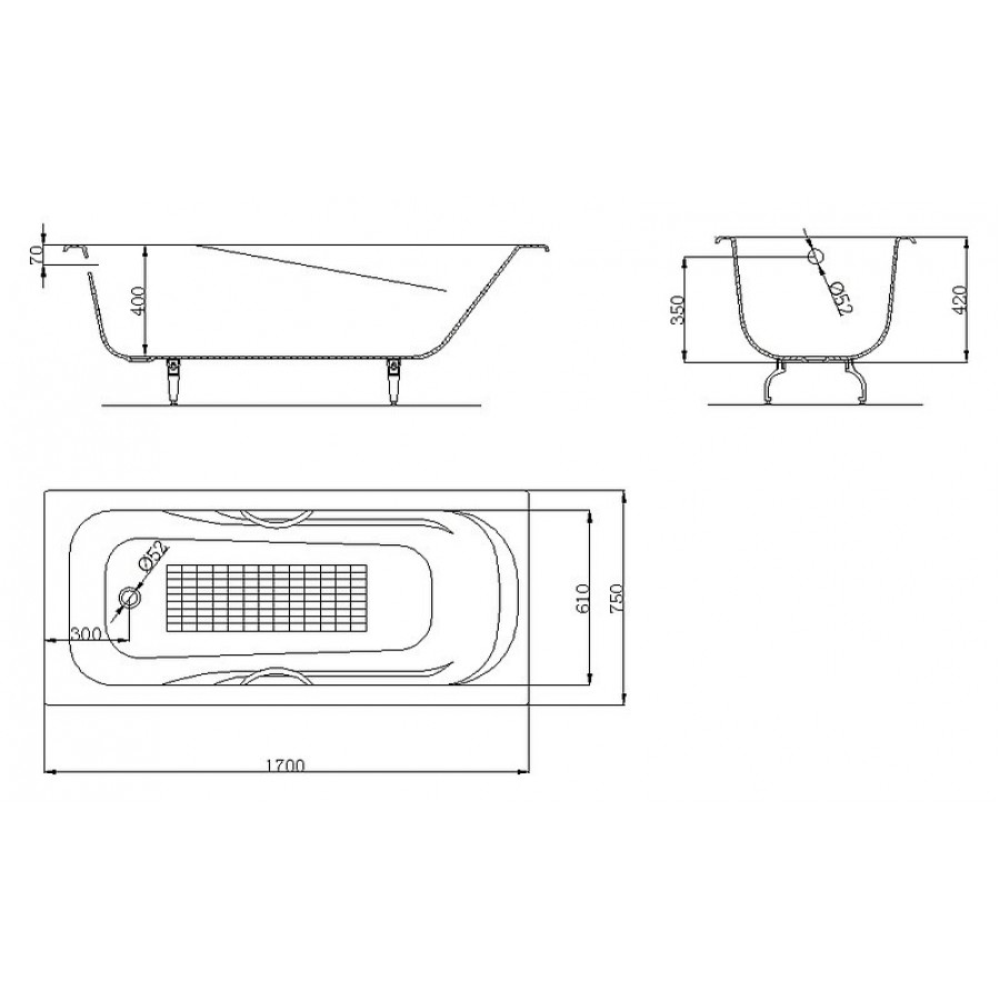 Чугунная ванна Castalia Carina 170x75 с ручками
