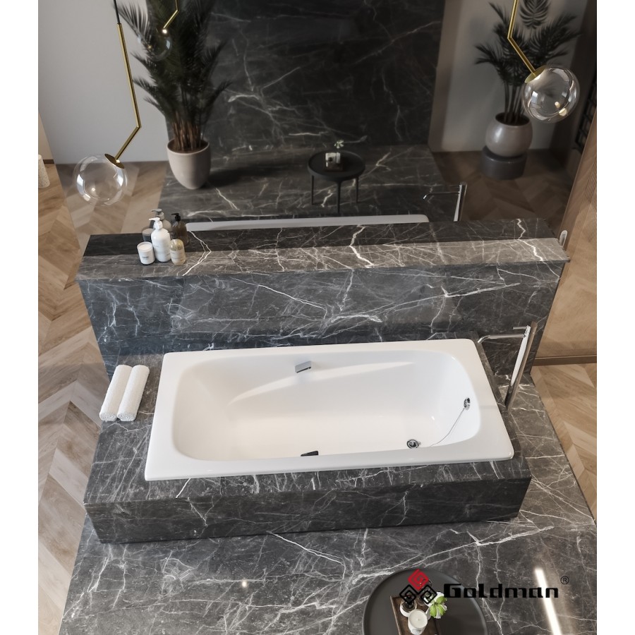 Чугунная ванна Goldman Art 180х85 - удобная и качественная ванна, а что самое главное, недорогая. Стекловидная титановая эмаль покрыта 3-мя слоями, сохраняя белоснежный вид в течение долгого времени. Данная эмаль используется у дорогих Европейских производителей. Вы покупаете то же качество, но только не переплачивая. Важно лишь помнить о том, что эмаль ванны необходимо беречь. Вес 132 кг. Простая и быстрая система креплений ножек. Крепление ручек не позволяет раскручиваться и приводить к сколам на эмали. Ванна чугунная Голдман Арт - отличный вариант для современной семьи.