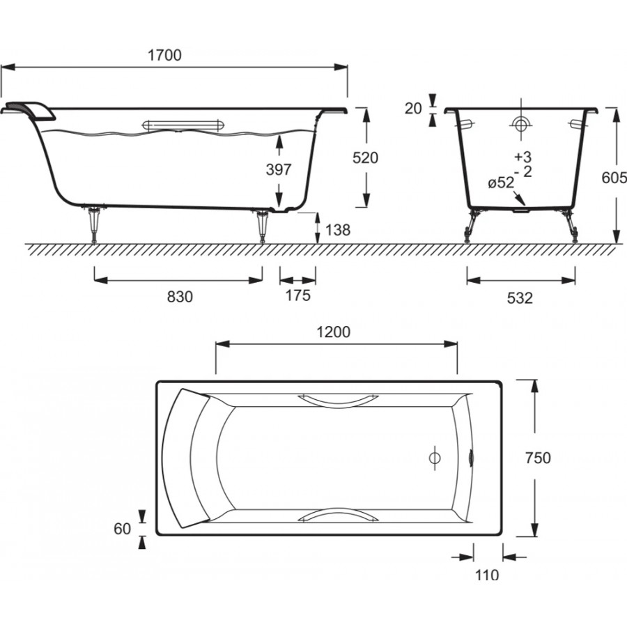 Чугунная ванна Jacob Delafon Biove E2938 170x75