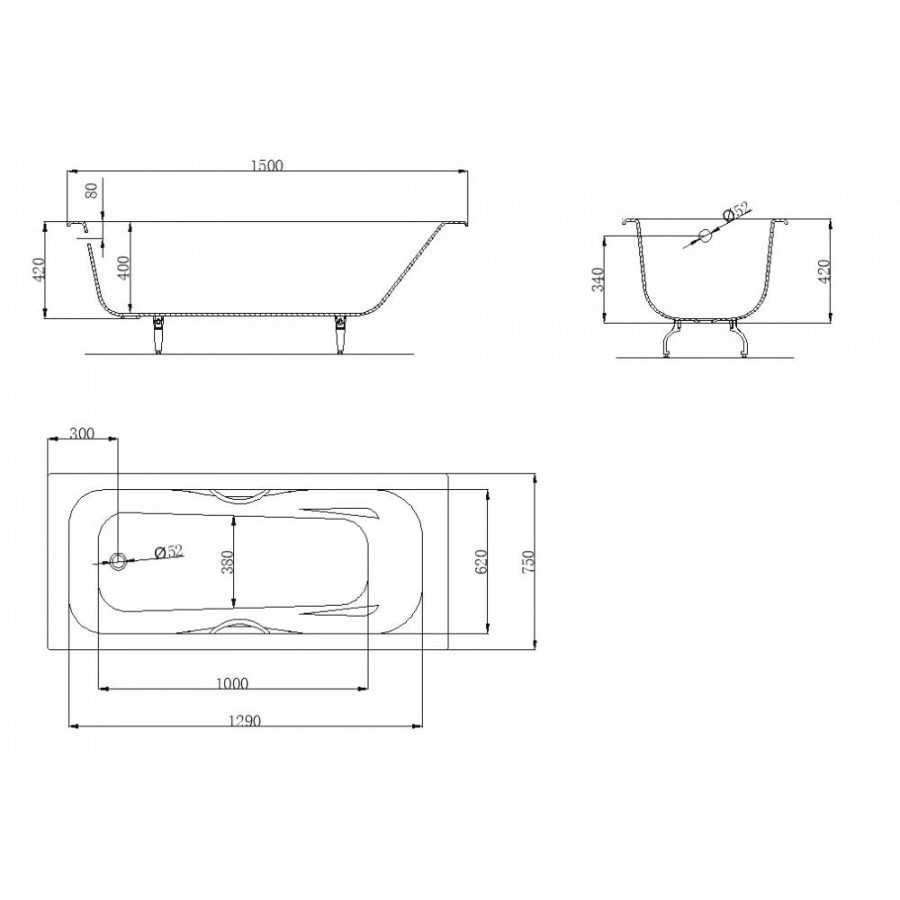 Чугунная ванна OWL 1975 Bjorn 150х75 б/п, с ручками, ножки в комплекте