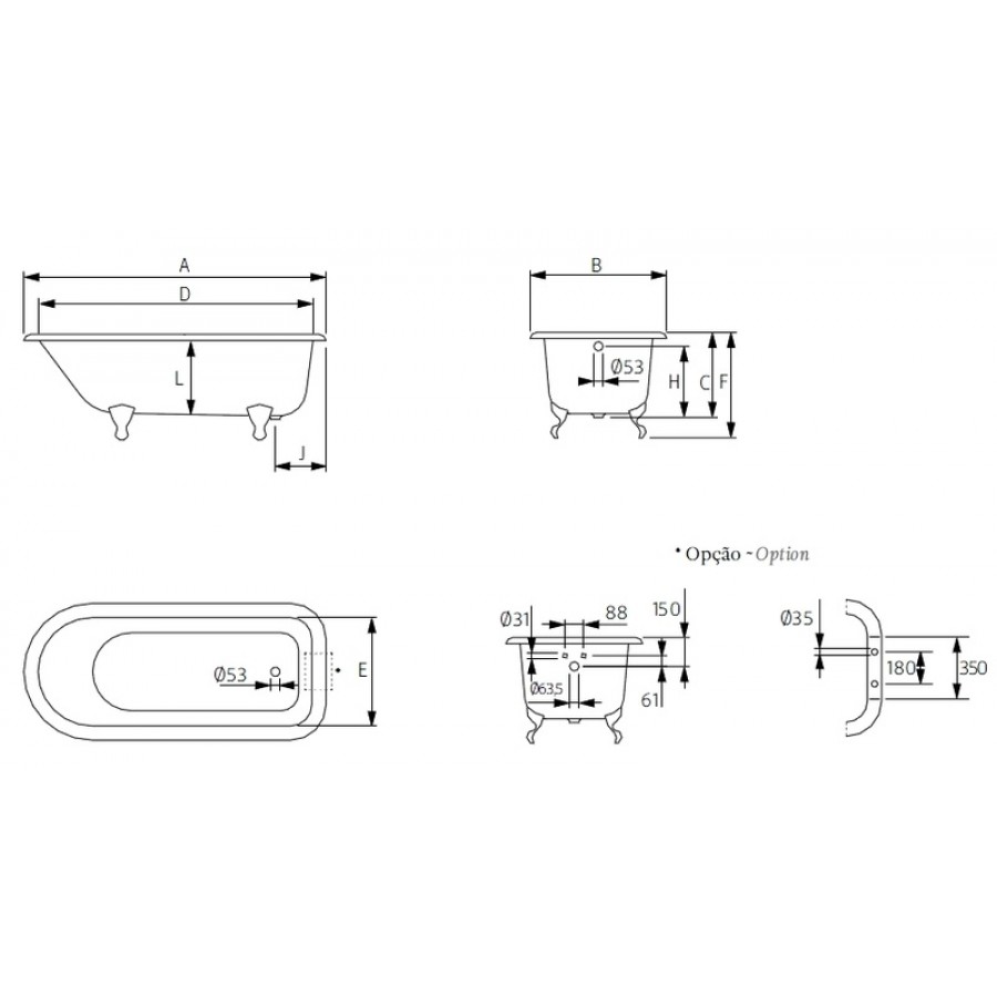 Чугунная ванна Recor Roll top 137x76 без ножек