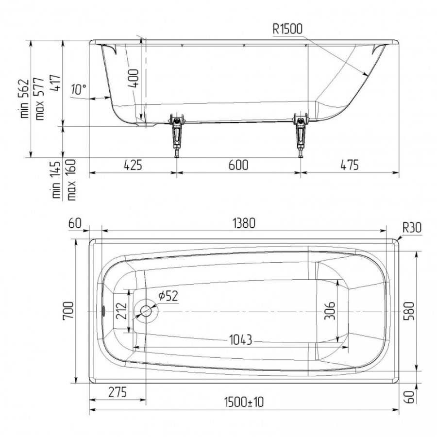 Чугунная ванна Универсал Классик 150x70 имеет высокий эксплуатационный срок, неприхотлива в уходе и обладает хорошими изоляционными качествами приглушения воды. Эмалированное покрытие чугунных ванн предполагает использование чистящих средств, не содержащих кислоты, это позволяет сохранить белизну и блеск эмали. Для ухода за поверхностью эмалированных ванн нельзя пользоваться металлическими щётками, стекловолоконными губками и иными изделиями из металлической проволоки или стружки. Придерживаясь данных рекомендаций, Вы в полной мере сможете насладиться использованием чугунной ванны долгие годы.