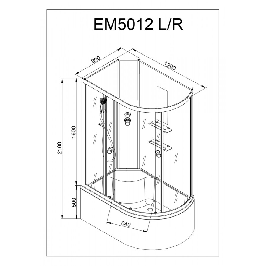 Душевая кабина AvaCan EM5012LN LED с гидромассажем 120x90. Усиленная конструкция душевой кабины AvaCan - инновационное решение в соединении материалов – дополнительная устойчивость и жесткость кабины при интенсивной эксплуатации. Увеличенная внутренняя площадь - при компактном размере, что позволит без помех разместить кабину даже в небольшой ванной и при этом не чувствовать себя стесненным. Премиальные материалы: европейский акрил, закаленное стекло, анодированный алюминиевый профиль.