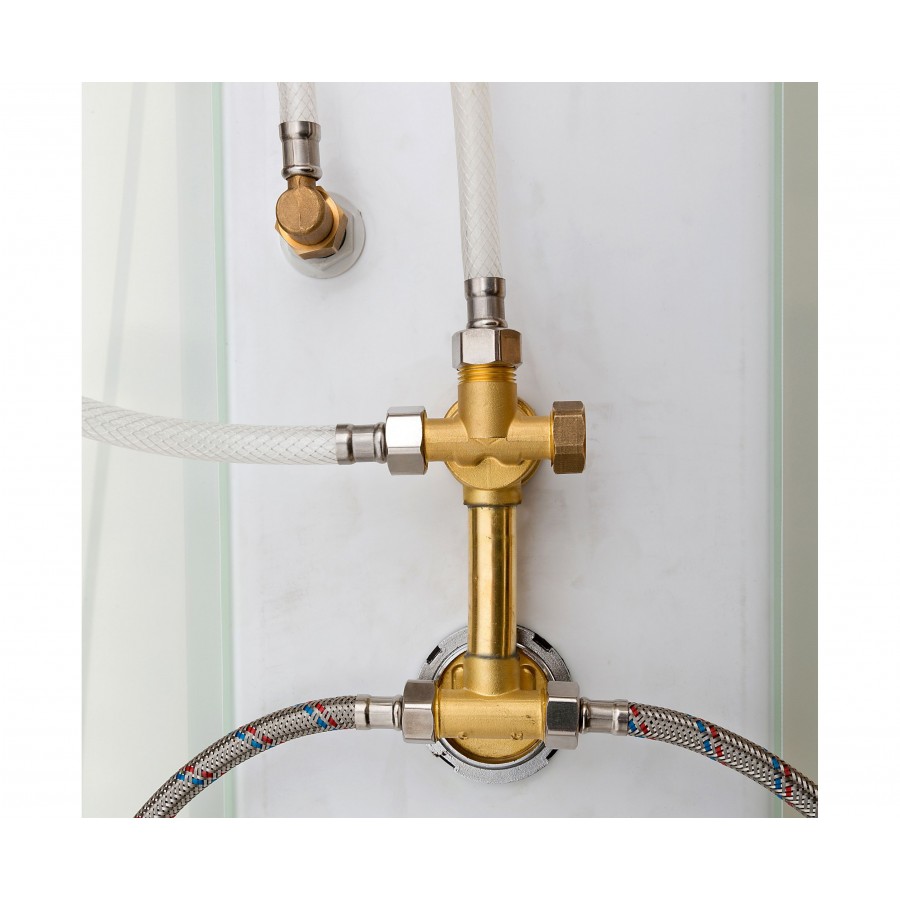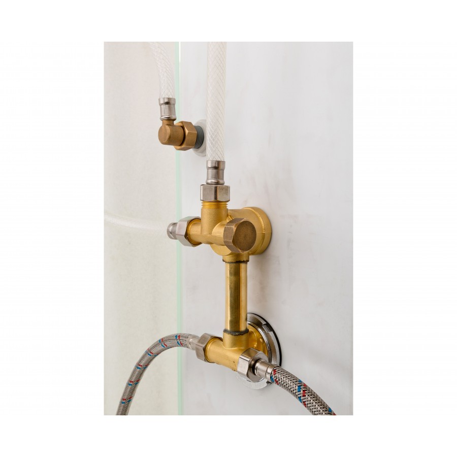 - Латунный смеситель с керамическими картриджами и резьбовыми соединениями
