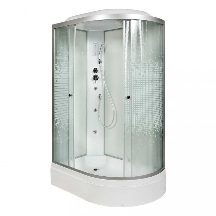 Душевая кабина AvaCan L 720 L с гидромассажем и электрикой 120х80 – с матовым рисунком мозаика на передних стеклах. Благодаря оцинкованному металлическому каркасу, поддон душевой кабины способен выдерживать большие нагрузки, а регулируемые ножки каркаса облегчают монтаж.