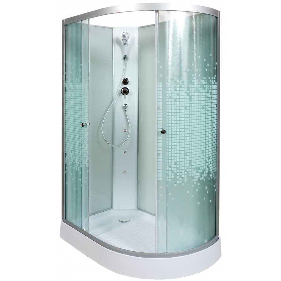 Душевая кабина AvaCan L 902 L N 120х80 без крыши с гидромассажем – с матовым рисунком мозаика на передних стеклах. Благодаря оцинкованному металлическому каркасу, поддон душевой кабины способен выдерживать большие нагрузки, а регулируемые ножки каркаса облегчают монтаж.