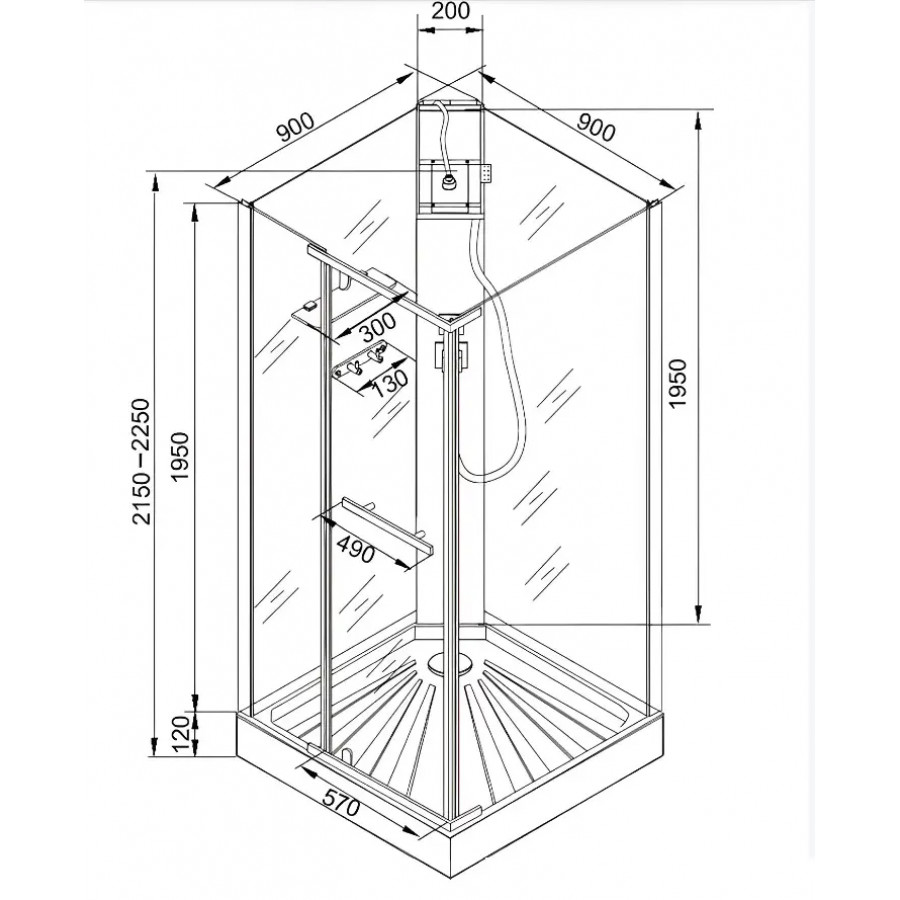 - Верхний душ - алюминиевый с регулировкой высоты 5 см + 5 см (регулируется до установки)