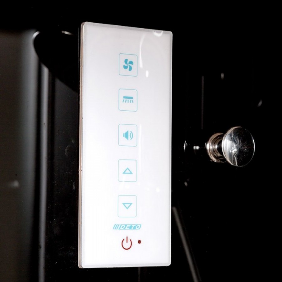 Душевая кабина Deto B90S black с LED подсветкой 90x90. В кабине Deto серии B передние стенки и две раздвижные дверцы изготовлены из стекла. Но использовано матовое рифленое полотно. Оно совершенно безопасное, так как закаленное и имеет толщину 4 мм. Изготавливается поддон из литого акрилового листа. Этот полимер позволяет обеспечить высокую гигиеничность сантехники, благодаря своей гладкости и антибактериальным свойствам.
