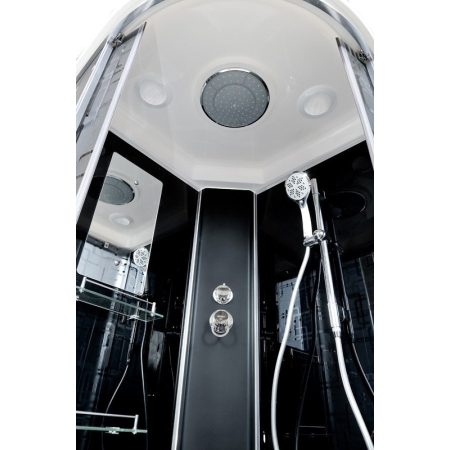 Душевая кабина Deto BM 4590 black 90x90. В кабине Deto серии BM передние стенки и две раздвижные дверцы изготовлены из стекла. Оно совершенно безопасное, так как закаленное и имеет толщину 5 мм. Изготавливается поддон из литого акрилового листа. Этот полимер позволяет обеспечить высокую гигиеничность сантехники, благодаря своей гладкости и антибактериальным свойствам.