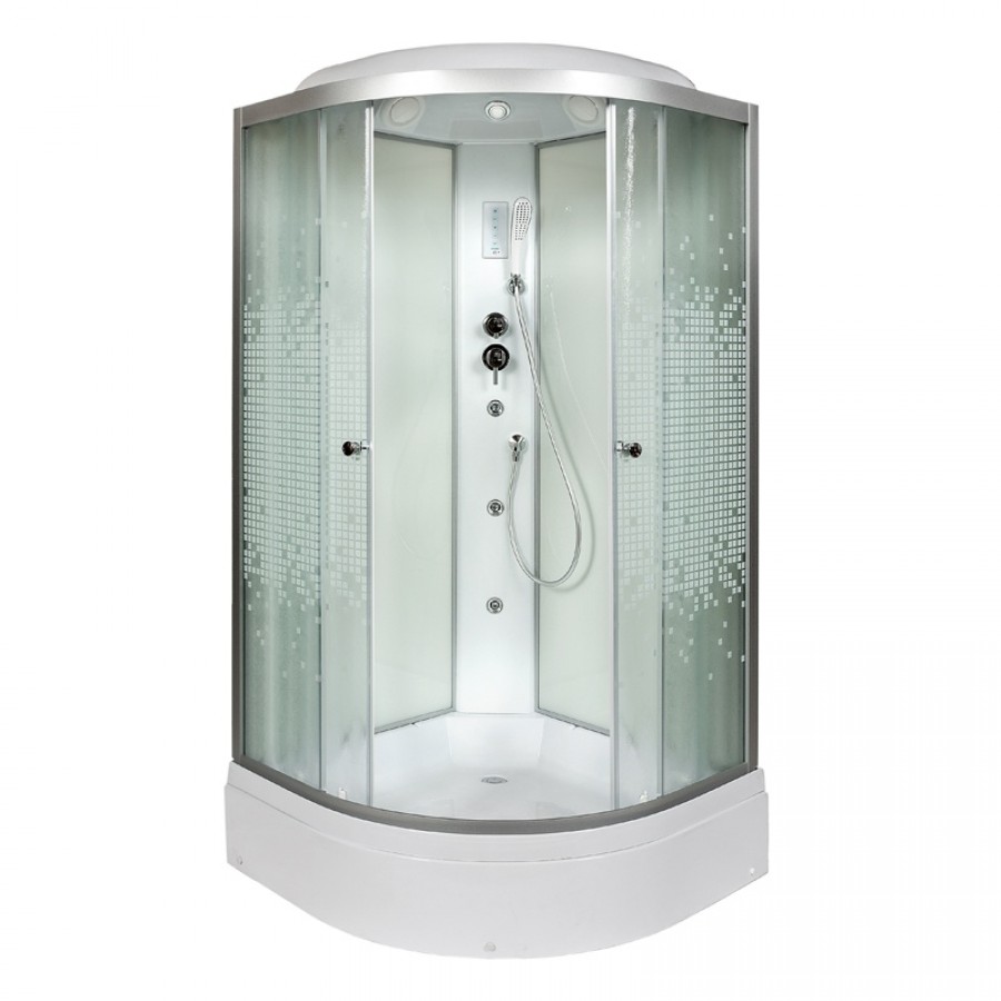 Душевая кабина Deto L 790 с гидромассажем и электрикой 90х90 – с матовым рисунком мозаика на передних стеклах. Благодаря оцинкованному металлическому каркасу, поддон душевой кабины способен выдерживать большие нагрузки, а регулируемые ножки каркаса облегчают монтаж.