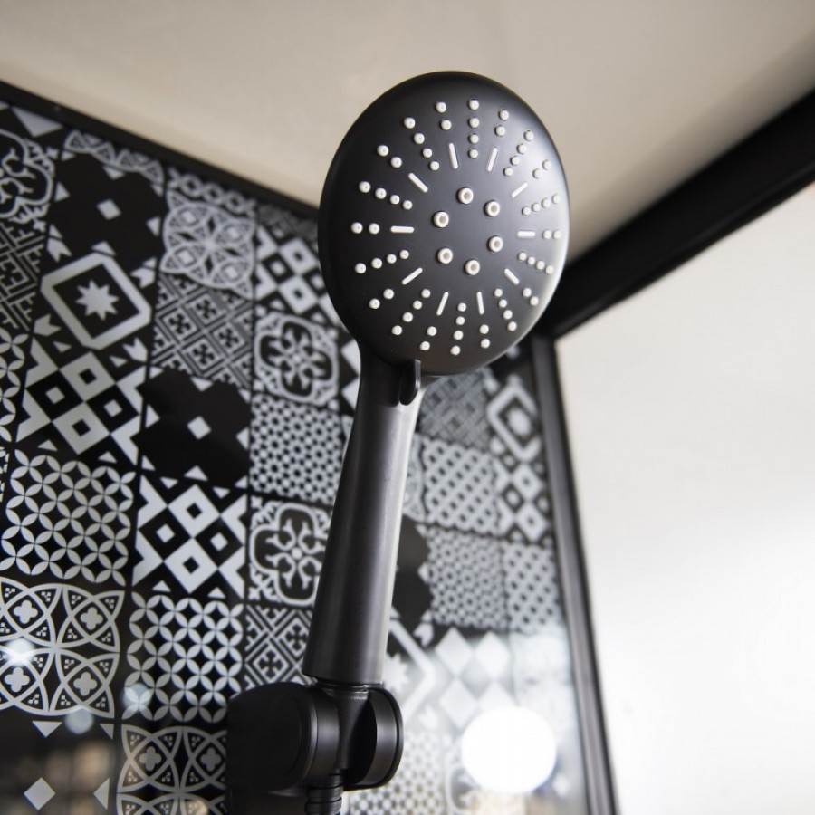 - душевая многофункциональная лейка со шлангом чёрного матового цвета