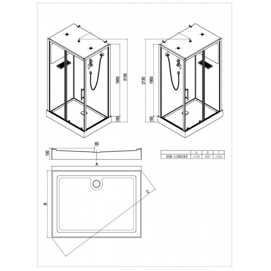 Душевая кабина Esbano BLACK ESB-1180CKR 110х80