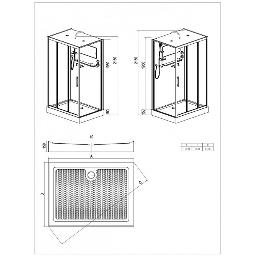 Душевая кабина Esbano GREY ESG-3129CKR 120х90