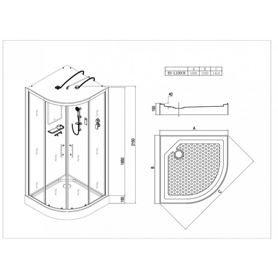 Душевая кабина Esbano Led ES-L100CR 100х100