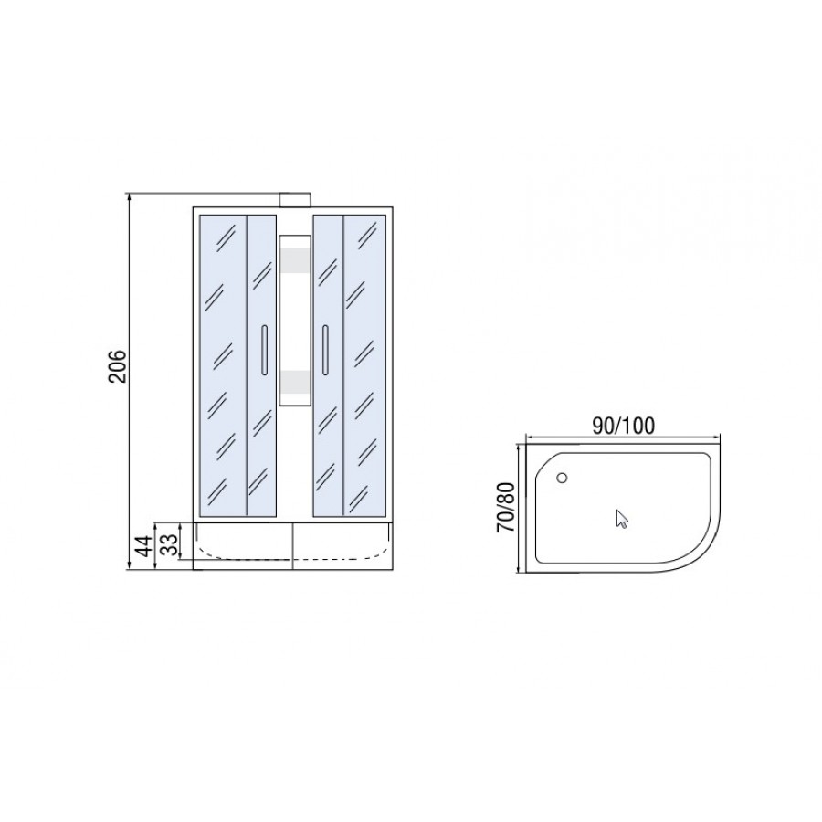 Душевая кабина Мономах 100/80/44 МЗ L 100х80 без крыши