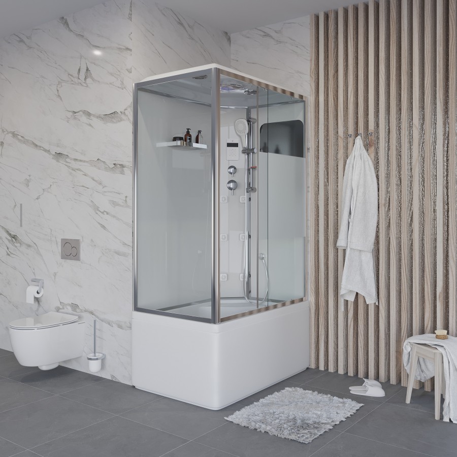 Душевая кабина Niagara NG-307-01R 120x80. Самой важной особенностью нашей кабины является высокий усиленный акриловый поддон с антискользящим покрытием, который имеет высоту 50 см и глубину 35 см. В таком поддоне вы сможете не только принимать душ, но и наслаждаться расслабляющим принятием ванны. Наша кабина также включает сиденье на поддоне, чтобы порадовать вас комфортом даже во время продолжительной процедуры. Бессиликоновая и легкая сборка за счет замковых соединений и специального крепежа - то, что нужно для быстрого создания уюта и релаксации в вашей ванной комнате.