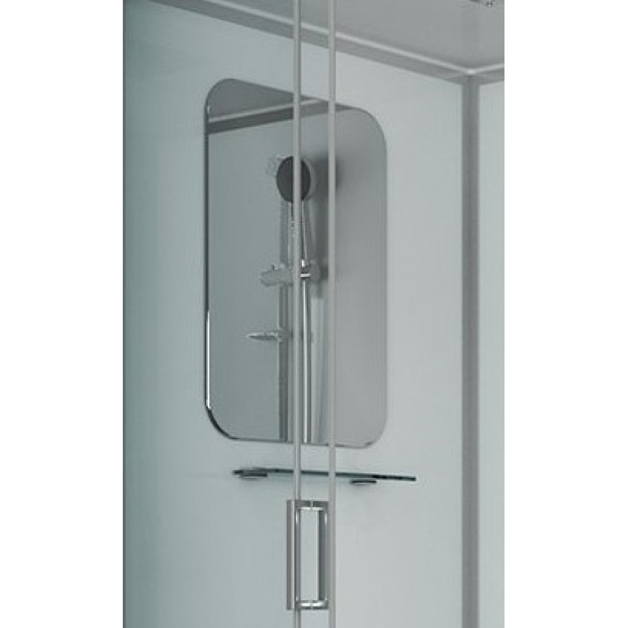 - Комплектация: сифон, тропический душ, шланг душа, штанга, полочка, зеркало, смеситель.