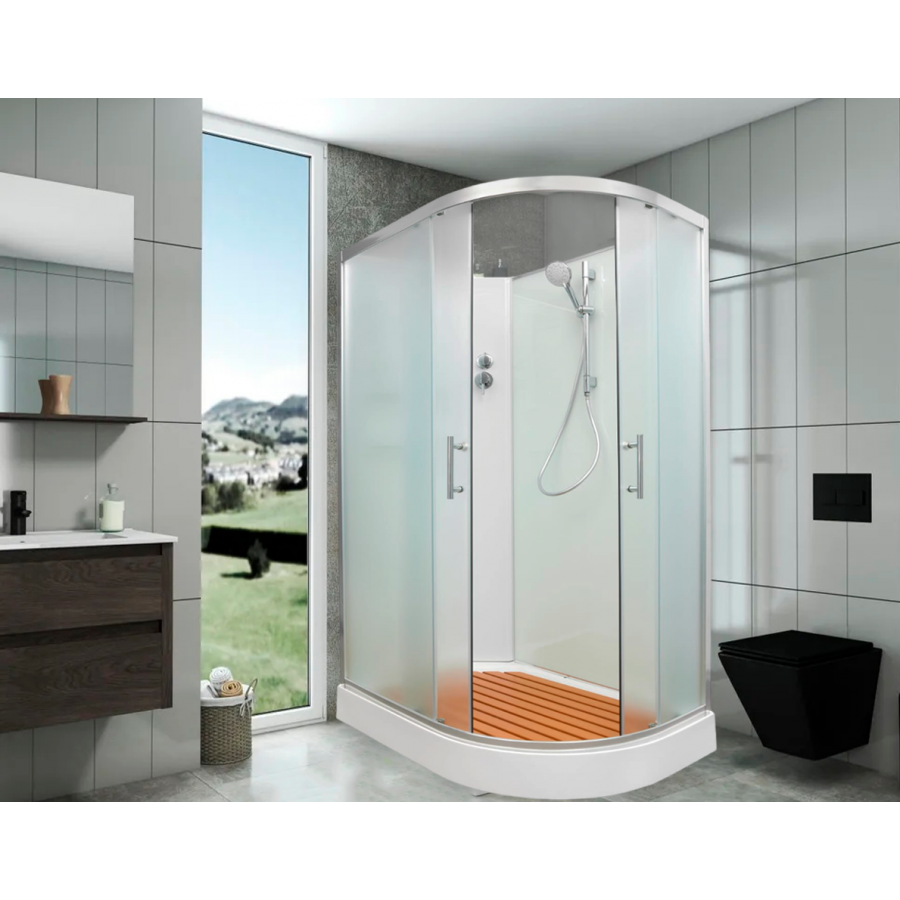 Душевая кабина Nivis F-1208L A отличается функциональностью и качеством сборки. Для монтажа не используется силикон, что предотвращает появление плесени на стыках. Модель высотой 200 см, в конструкции предусмотрен невысокий поддон в 15 см. Он установлен на усиленном металлическом каркасе с регулируемыми ножками. Акриловая поверхность проста в уходе, устойчива к механическим повреждениям. Сифон с гидрозатвором обеспечивает быстрый слив воды. Настил из полимерных материалов снимается. В душевой кабине имеется две стеклянные полки с ограничителями и зеркало. В душе предусмотрено шесть режимов подачи воды. Все шланги имеют резьбовое соединение. На дверцах установлены хромированные ручки.
