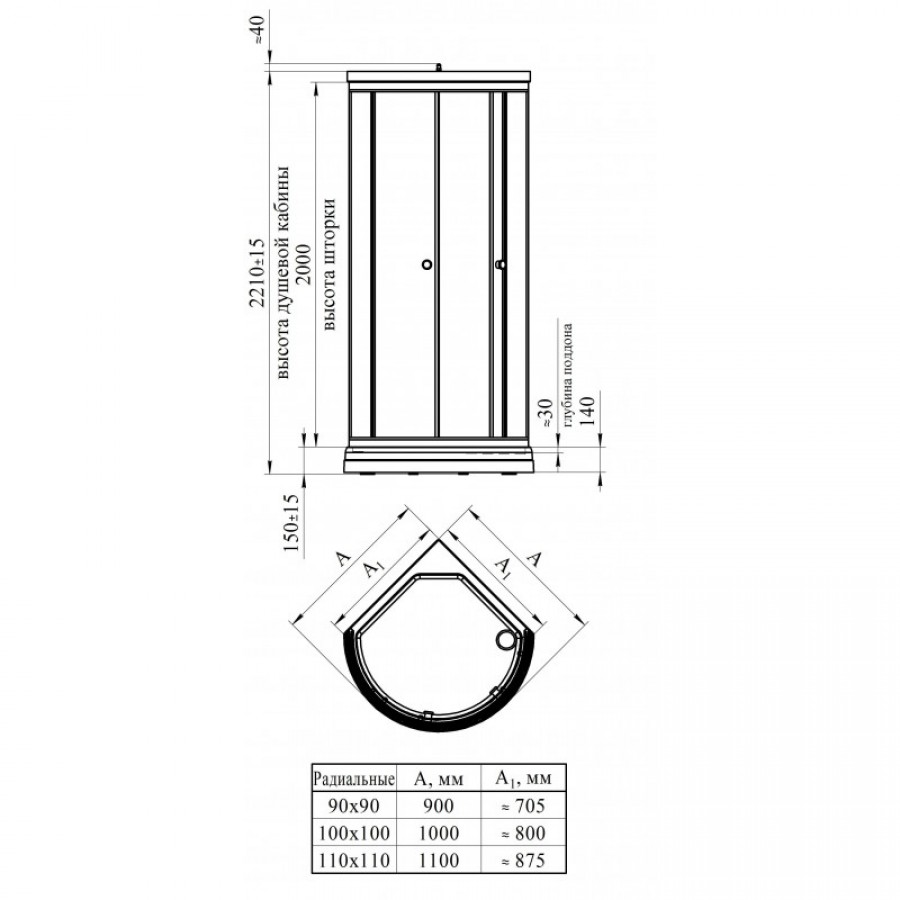 - Собранная душевая кабина с поддоном на раме-подставке с устройством слива, крыша.