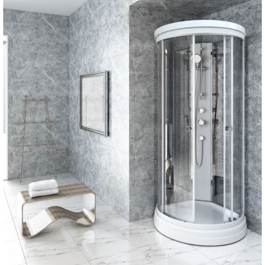 Душевая кабина RADOMIR Стронг 100х100. Стенки и дверца душевой кабины изготовлены из закаленного стекла толщиной 6 мм. Дверь открывается плавно и бесшумно благодаря роликам, которые мягко скользят по металлическим направляющим. Для удобной чистки и безупречного внешнего вида душевой кабины на стекло наносится специальное нанопокрытие Radomir® ClearGlass, предотвращающее появление разводов и подтеков. Внутри кабинки предусмотрены стеклянные полочки для размещения шампуней, гелей и прочих необходимых вещей.