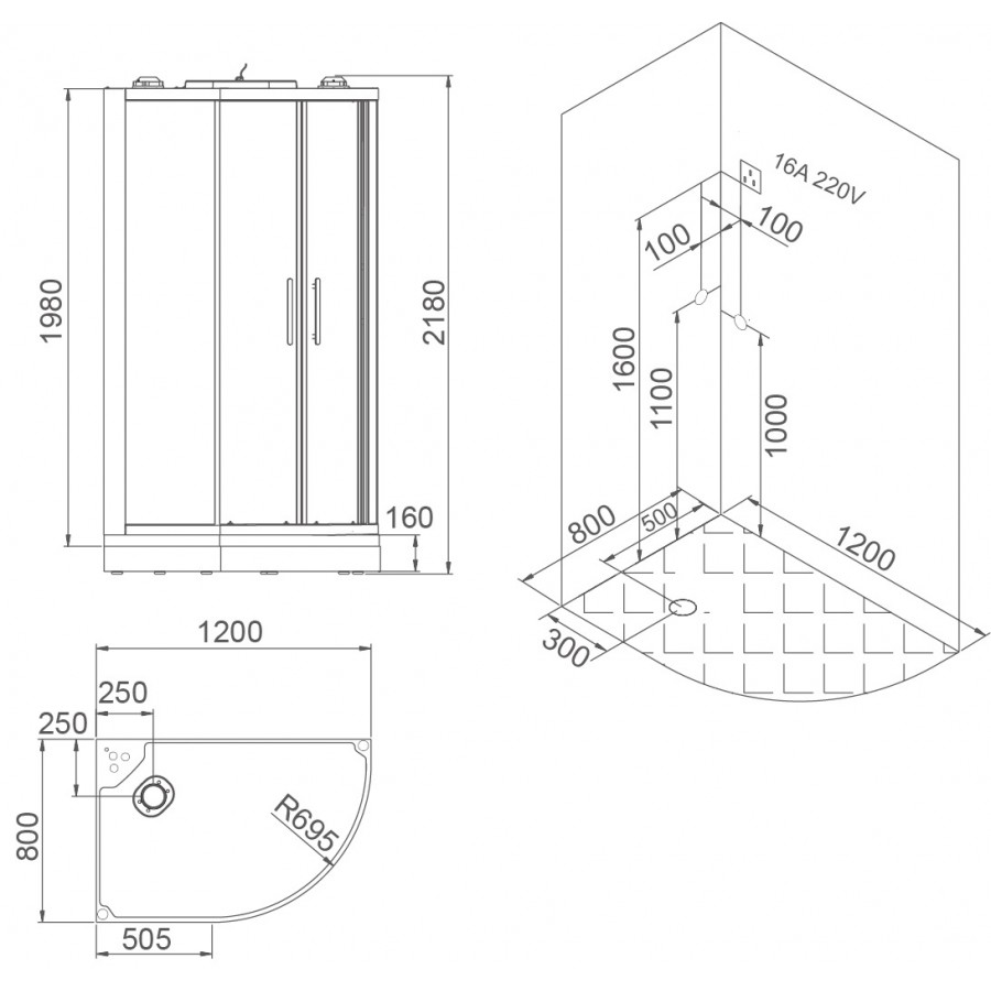 Душевая кабина SSWW BU609 L/R 120х80 с паром