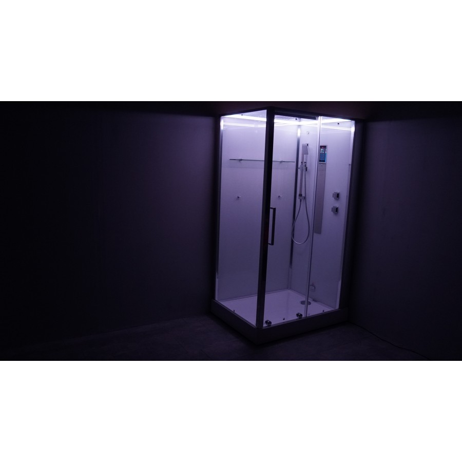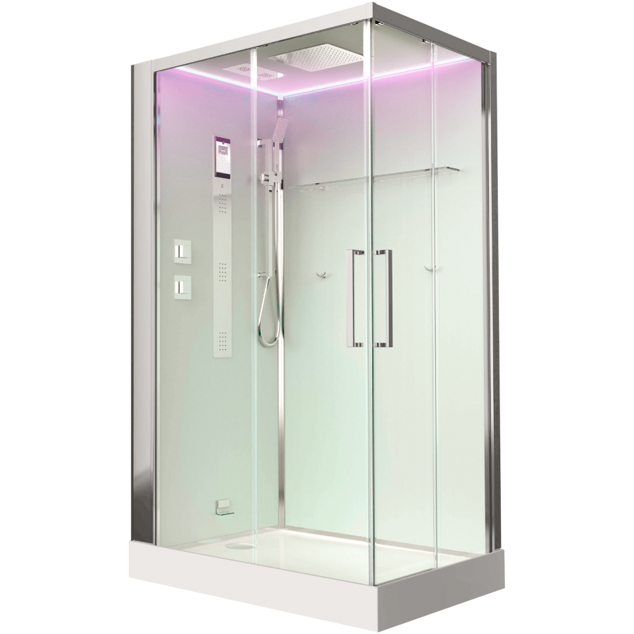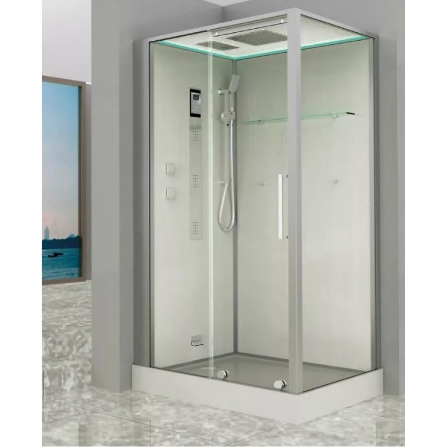 Душевая кабина Timo Helka 120х90 R. Данная модель имеет прямоугольную форму, предназначена для установки к стене и обладает множеством функций. Cтекло душевой кабины Timo обладает ударопрочными свойствами за счет проведенного в процессе производства закаливания.