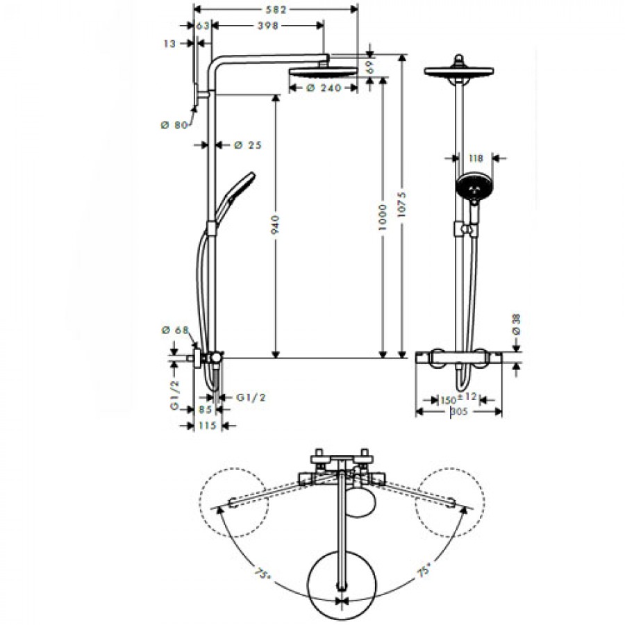 Душевая система Hansgrohe Raindance Select S 240 2 jet Showerpipe хром/белый 27129400
