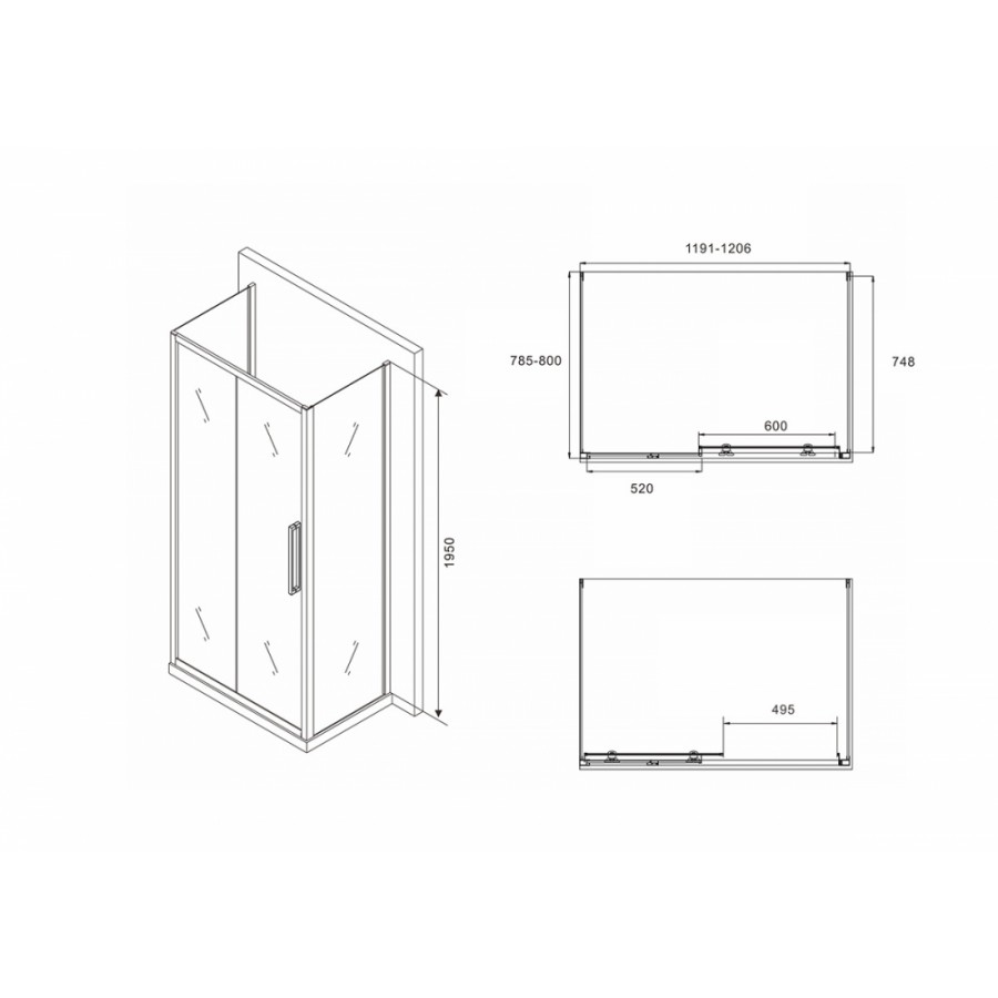 Душевой уголок ABBER Schwarzer Diamant AG30120BH-S80B-S80B 120х80